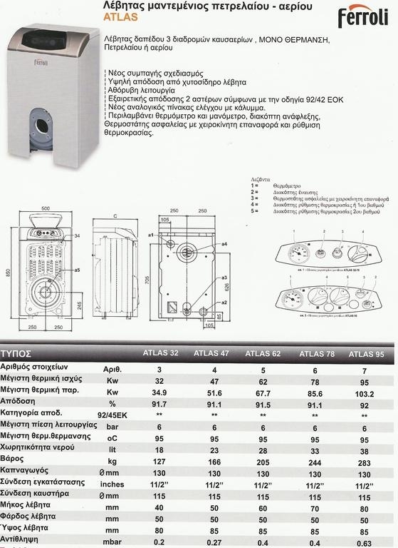 FERROLI ATLAS 78 75000 kcal/h ΛΕΒΗΤΑΣ ΧΥΤΟΣΙΔΗΡΟΣ ΜΑΝΤΕΜΙ ΠΕΤΡΕΛΑΙΟΥ ΑΕΡΙΟΥ