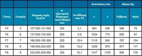Οι λέβητες της σειράς F αποτελούνται από τον εμπρόσθιο καθρέπτη τα ενδιάμεσα στοιχεία και τον οπίσθιο καθρέπτη. Ο αριθμός όλων των στοιχείων καθορίζει τη θερμική ισχύ. Έλεγχος και τεστ λειτουργίας σύμφωνα με το DVGW-CE 0085.